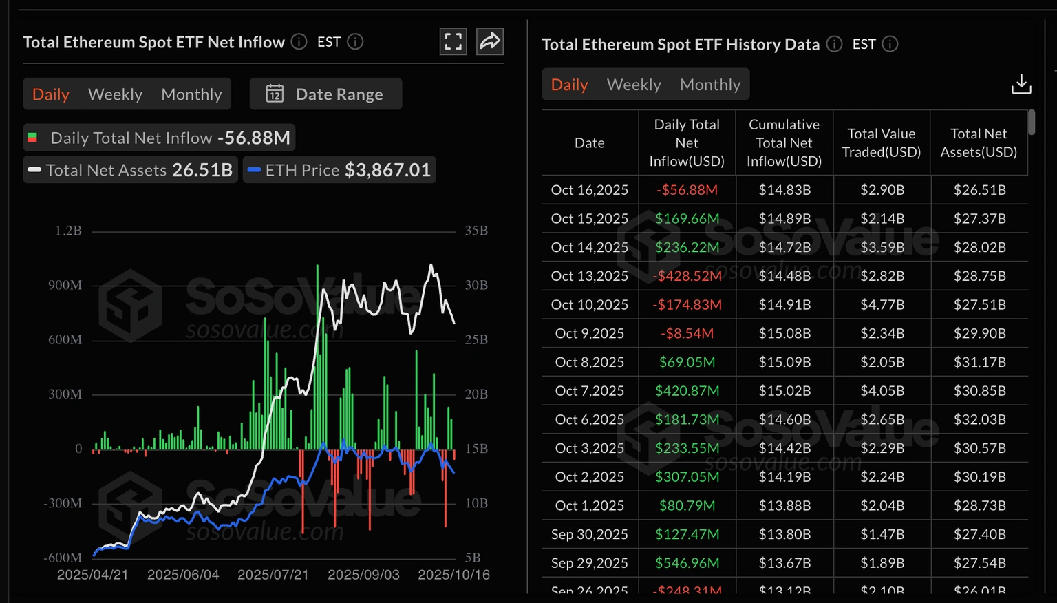 The Ethereum ETFs are not spared, with outflows as of Thursday averaging 57 million, according to SoSoValue data. The only product to receive inflows was BlackRock ETHA, which had inflows amounting to $47 million, whereas ETH had an outflow of $69 million.