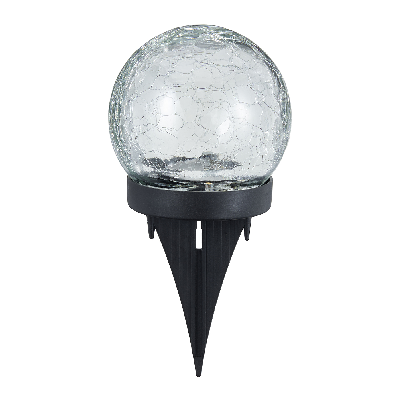 HAPPYJOINTの「ソーラーライト トパーズ」は、クラック(亀裂)加工が施されたガラス製のソーラーライト。アンティークな雰囲気を演出できるのが特徴です。照度は4.9ルクスとやや明るく、足元を照らすなら問題ない光量がありました。オレンジがかった優しい光がガラスに入った亀裂によって幻想的に拡散するので、庭や玄関周りに設置するのがおすすめです。また、連続点灯時間は17時間8分と非常に長いといえます。充電が十分でなくなると徐々に光が弱くなっていくものの、暗い時間が長い冬の間も一晩中照らし続けられるでしょう。機能面では、防水性はあるものの、色味や照射方向の調整はできないのが惜しい点。設置方法は、置いて使えるほか付属のパーツを使えば差し込みにも対応しています。