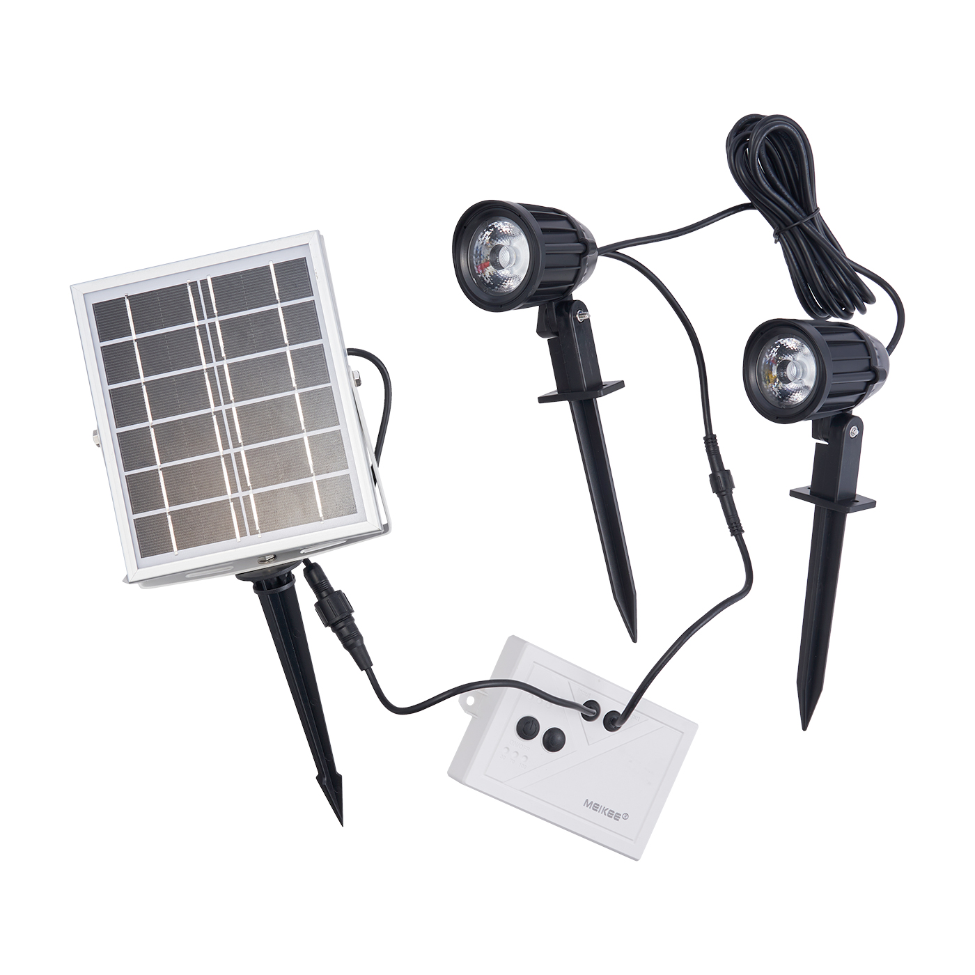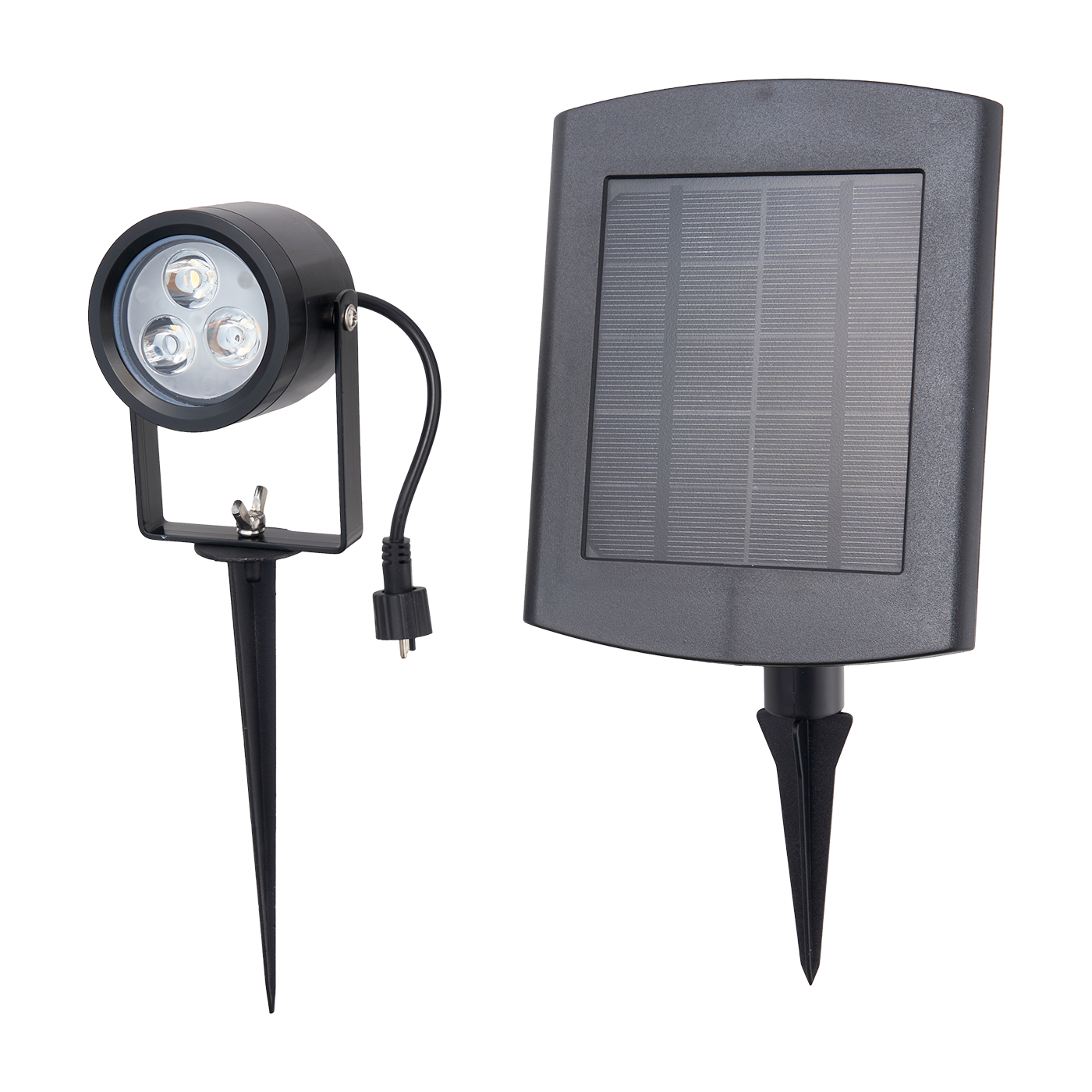 投光器やランタンといった商品を多く販売しているMEIKEEの「ソーラー ガーデンライト」。ソーラーパネル分離型で、ライトとパネルを最大で8m離して設置できます。明るさの検証では、11.2ルクスと十分に明るく、高評価を獲得。スポットライト型なので、足元や植木を明るくはっきりと照らせます。一方、5時間の充電での連続点灯時間は2時間29分と短い結果に。夕方5時に点灯し始めると夜7時半ごろには消灯してしまうため、いまひとつといえるでしょう。また、徐々に明かりが弱くなるのではなく、突然明かりが消えるので、近くを歩いていると驚くかもしれません。機能面では昼白色だけでなく、オレンジがかった電球色や、青色がかった昼光色も選べる点が魅力。また、首の角度を上下左右に動かせるうえ、差し込みのほか壁に掛けて使用することもできるので、照らす場所は自由自在です。