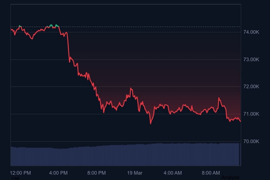• Bitcoin price is holding near the $70.7K mark.