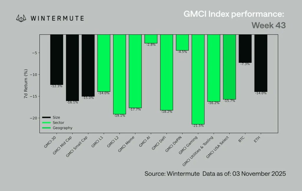 Bitcoin and Ethereum continue to trade within a tight range, hovering around $107,000 and $3,700, respectively. Altcoins continue to trend based on market-specific narratives, while market indexes such as GMCI-30 dropped sharply, falling 12% in last week’s market. Declines across assets were widespread, led by gaming and Layer 2 assets, while AI and DePIN assets noted a Relative Strength Index improvement. These trends suggest post-FOMC liquidity adjustment changes rather than structural problems.