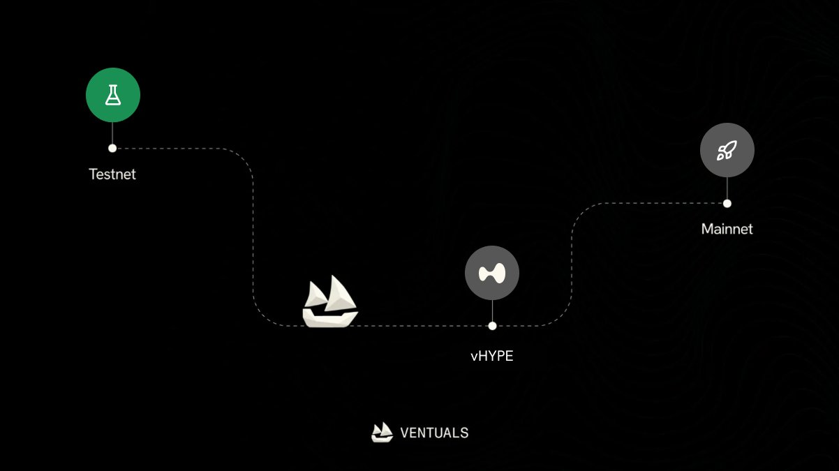 В августе 2025 года Ventuals запустила свою тестовую торговую кампанию, позволяющую пользователям торговать с использованием mockUSDC и соревноваться в рейтинге лидеров. После запуска основной сети в октябре 2025 года протокол ввел стейкинг vHYPE, распределение баллов Ventuals и выпуск NFT Genesis.