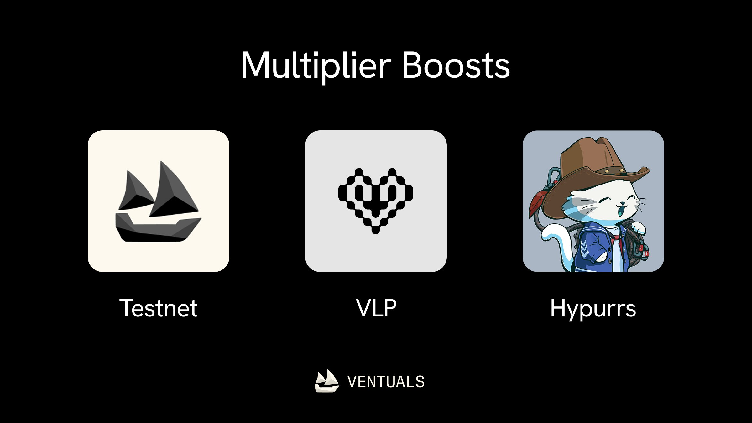Сообщество Ventuals построено на идее совместного развития открытого частного рынка, структурированного по трехступенчатой схеме, сочетающей стимулы тестовой сети, держателей Hypurr NFT и бонусные баллы.